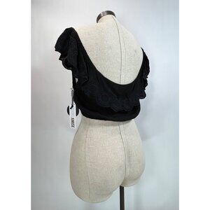 AMUSE SOCIETY Crop Top Sz L Black Embroidered Button Up Off The Shoulder Boho