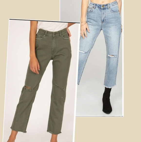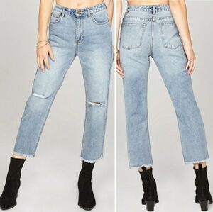 Cool girl essential. The Selena Pant is a classic distressed denim pant featuring a high waist, raw hem and five pocket styling.