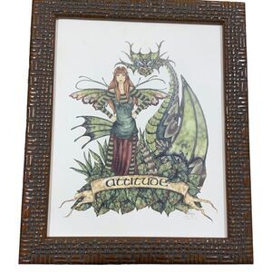 AMY BROWN Attitude Fairy and Dragon 1999 Framed Picture