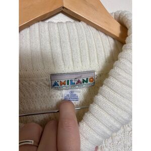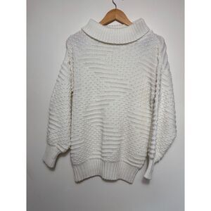 A'Milano Sweater Turtleneck Chunky Knit Cream White Small 80s Fisherman Abstract