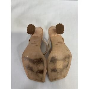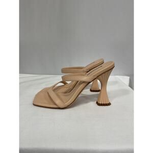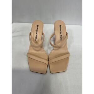 A'Mmonde Atelier 'Andrea' Beige Leather 100 Sandals Size 6 US / EU 36: leather blend upper and sole, angled square toe.