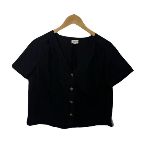 A.N.A 100% Cotton Cropped Boxy Fit Button Front Blouse Women’s Size Small