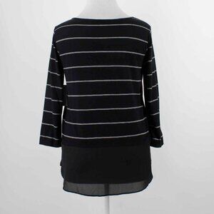 ANA $26 Sz XL Black White Stripe Chiffon Peplum Rayon Poly Knit Top