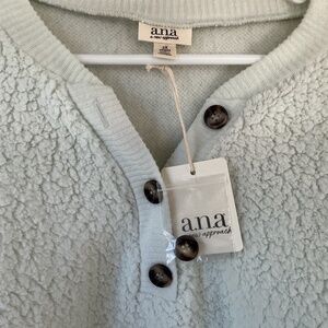 A.N.A. 3X White Faux Fur Sherpa Pullover Top Sweater 3-Button Crew Neck NWT