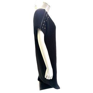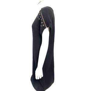 A.N.A. A New Approach presents a chic black knitted dress in size L. Crafted from 100% acrylic, this comfortable piece features a stylish zipper detail on the shoulders, perfect for any casual or semi-formal event.