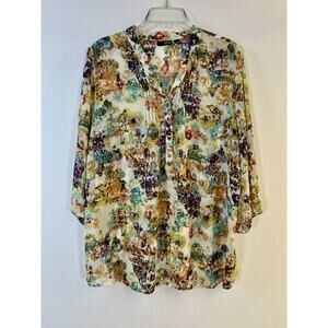 A.N.A. A New Approach Artsy Floral Print Top Women's Size XL Office Boho