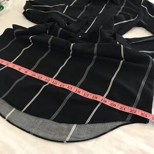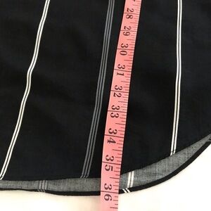 Black dress with white and gray vertical stripes