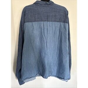 The A.N.A Blue Patchwork Denim style Longsleeve Top in size 5X is a stylish and comfortable addition to any wardrobe. Made from cotton denim fabric, this colorblock patterned top features a collared neckline and classic/fitted sleeves. The button-up closure adds a touch of sophistication to this basic yet fashionable piece perfect for plus-size women looking for a versatile and trendy style.