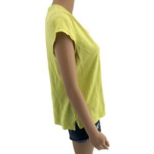 ANA A New Approach LARGE Petite Neon Yellow Burnout V Neck Basic Tee Shirt