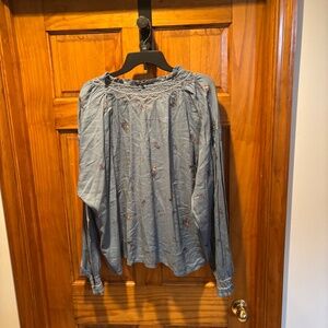 ANA A New Approach Maribel Floral Blue Long Sleeve Blouse XXL Tall NWT