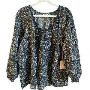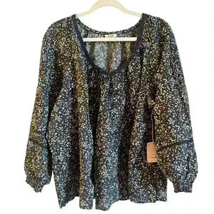A.N.A (A New Approach) Rowan Ditsy Floral Navy Balloon Sleeves Blouse 2X NWT