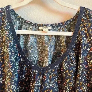 Rowan Floral Navy V-Neck Lace Trim Blouse. New with Tags.