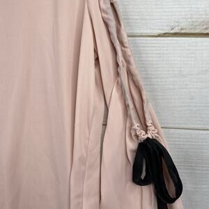 ANA A New Approach Top Womens L Pink Black Tie Slit Sleeve Lined Keyhole Back