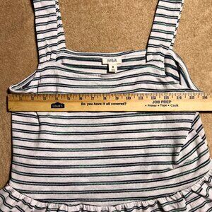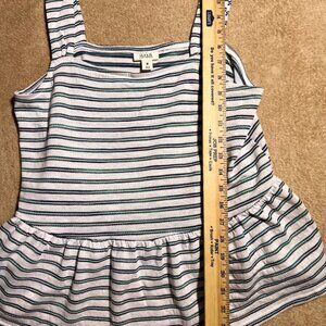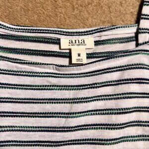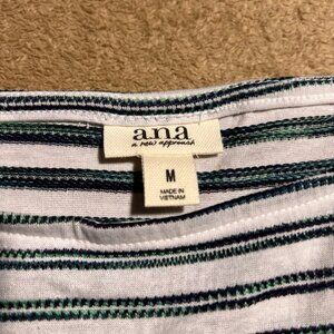 A.N.A A New Approach Women Medium White Blue Green Ruffle Stripe Tank Top (D)