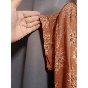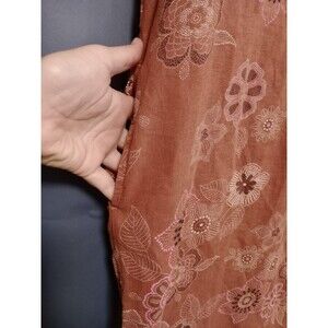 The dress comes in a gorgeous deep orange color with a lovely flower pattern, and is sized XS for a perfect fit. It's a midi length dress that can be worn in the summer, fall, or spring, making it versatile and practical. Made in India, this dress is a stylish addition to any wardrobe.