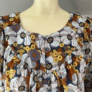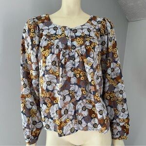 A.N.A A New Approach Women’s Floral Boho Blouse Gray Yellow Brown S