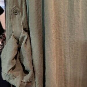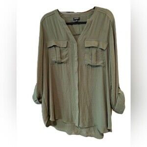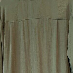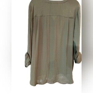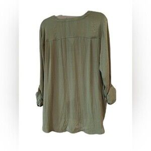 A.N.A A New Aproach Size XXL Women's Roll Tab Sleeves Popover blouse in olive avocado green with 2 front pockets V-neckline & button down top. Have the ability to roll sleeves up or down. Lovely light flowy top great for work or casual event to dress up or down