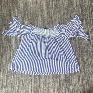 ANA A New Approach Womens Size Medium Smocked Front Blouse Blue White Stripe