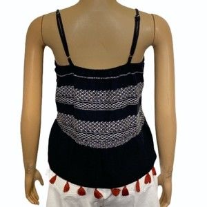 Bohemian a.n.a. tassel tank top chic embroidered Detailing excellent preowned condition Size M. Spaghetti strap style adjustable. 100% cotton. Made in India. Measurements are approximately in inches Bust is 18-19" pit to pit stretch. Length is 23"