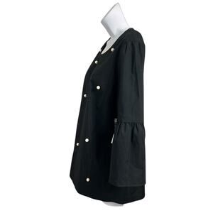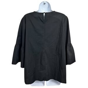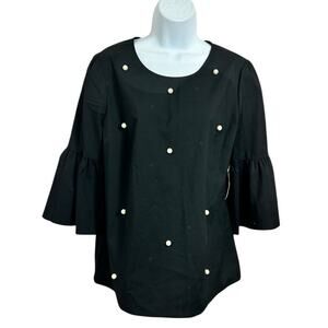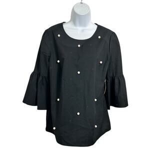 ANA Black Pearl Blouse Sz Large Flounce 3/4 Sleeves Versatile Minimalist Top NEW