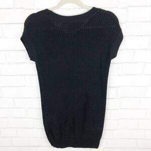 A.N.A. Black Short Sleeve Scoop Neck Chunky Knit Sweater Top Pullover Size XS