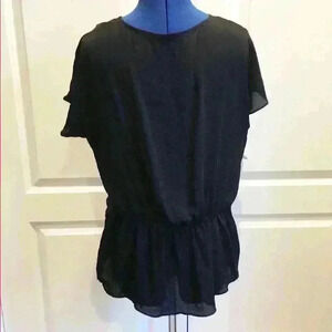 ana black tunic size M cap sleeves. 100% polyester. Bust 20”, from shoulder to hem 24”. Cute tie accent at waist. All measurements are approximate. In excellent condition! Thank you for coming by our closet. We are a fast shipper!