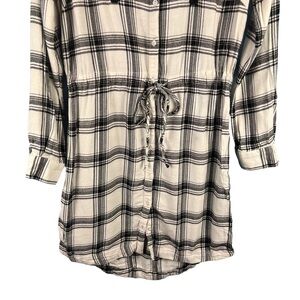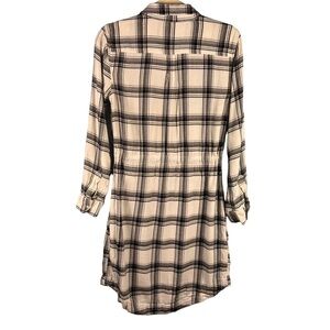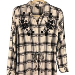A.N.A Black White Windowpane Plaid Long Sleeve Dress Embroidered Size XS Casual