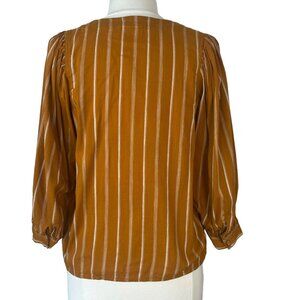 ANA Blouse Womens Medium Orange White Long Sleeves Vneck
