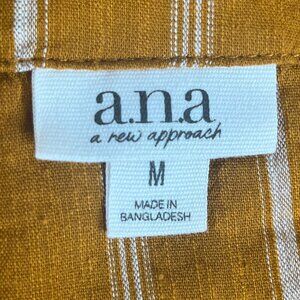 Elevate your wardrobe with this A.N.A blouse. Crafted from breathable cotton, its rust and white stripe pattern adds a sophisticated touch. Ideal for work or casual outings, it offers both comfort and style. The medium fit ensures a flattering silhouette, making it a must-have addition to your collection.
