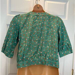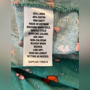 A.N.A Blouse Women's Large Green Floral Print Boho Peasant Linen Blend; Approximate measurements: chest: 20" length 21" sleeve 16"