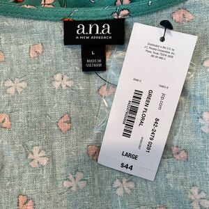 A.N.A Blouse Women's Large Green Floral Print Boho Peasant Linen Blend Top