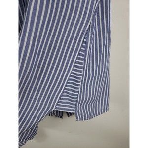 A.N.A. Blue White Blouse Women's Large Rayon button front