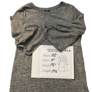 A.N.A Soft gray, stretch, knit, pullover crew neck, knee length, bell sleeves, Bohemia style dress. Size Large