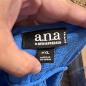 The A.N.A Boho Blouse in size PXL is a stylish and comfortable top perfect for petite women. This solid blue blouse features short flutter sleeves, a round neckline, and a pullover closure. The bohemian theme and colorful style make it a versatile piece that can be dressed up or down for any occasion. The regular fit and basic style offer a flattering silhouette while the delicate details add a touch of elegance to the overall look.