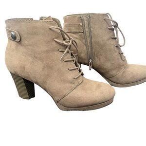 Elevate your style with these chic tan ankle boots. Perfect for any occasion, these boots offer both comfort and elegance.
