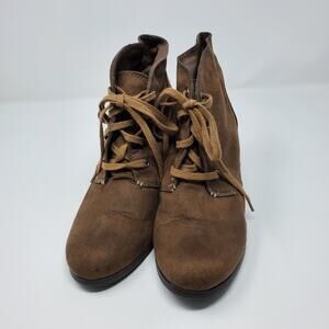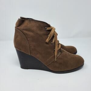 A.N.A. Brown Lace Up Wedge Booties