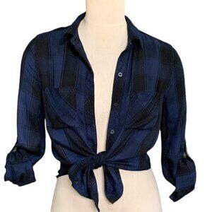 ANA Buffalo Plaid Button Front Shirt Sz XS Blue & Black #63G