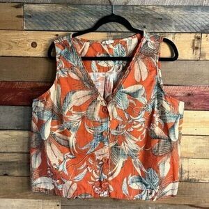 A.N.A Burnt Orange Floral Button Front Tank Size XXL