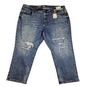 A.N.A Curvy High Rise Distressed Straight Jeans Womens 30W Stretch Denim Blue