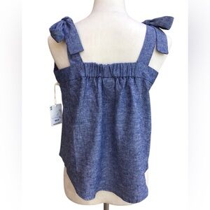 ANA Denim Blue Linen Baby Doll Crop Top Size M NWT