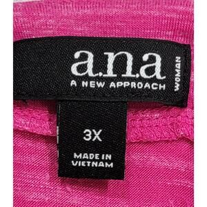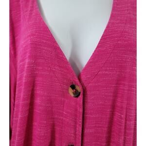 A.N.A Fuchsia Pink Slub Knit Button V Neck Top 3X Lightweight Soft Stretchy