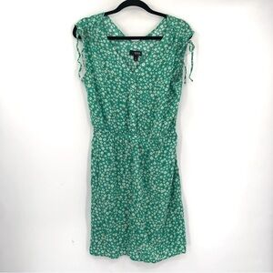 A.N.A. Green Ditsy Floral Dress Ruched Tie Shoulder Rayon Sundress Daisy Pockets