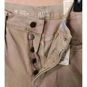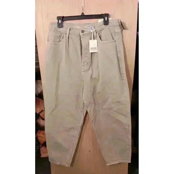 A.N.A High Rise Balloon Jeans Size 14 Taupe Roomy Hip & Thigh Tapered Leg NWT