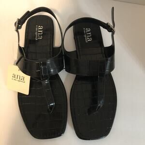 ANA Kate Womens Flat Sandals T-Strap Size 8M Black Neutral Minimal Beach Y2K