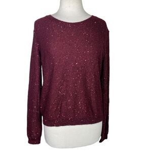ANA L burgundy red sweater with tiny sparkly sequins and a bow tie in back