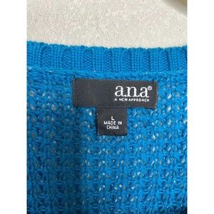 A.N.A Large Sweater Blue Knit Ribbed Pullover Long Sleeve Scoop Neck Stretch