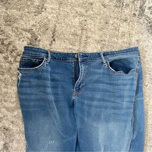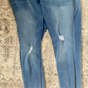 Distressed near knee areas, distressed hem at ankle. Very stretchy