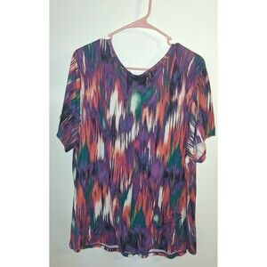 ANA Multicolor Geometric Short Sleeve Blouse Sz 3X