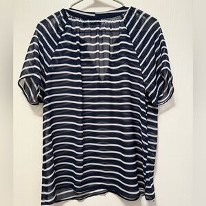 A.N.A Navy and White Striped Sheer Blouse Size Medium