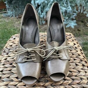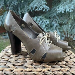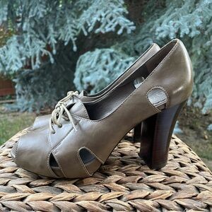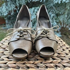 A.N.A. New Approach Camel Tan Color Open Peep Toe Lace Front Pumps Size 7.5
